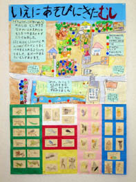 自分の家のまわりで見つけた虫を種類にわけて絵にかいたり、シールをはったりと工夫をしたまとめができました。見ていて楽しくなる1年生