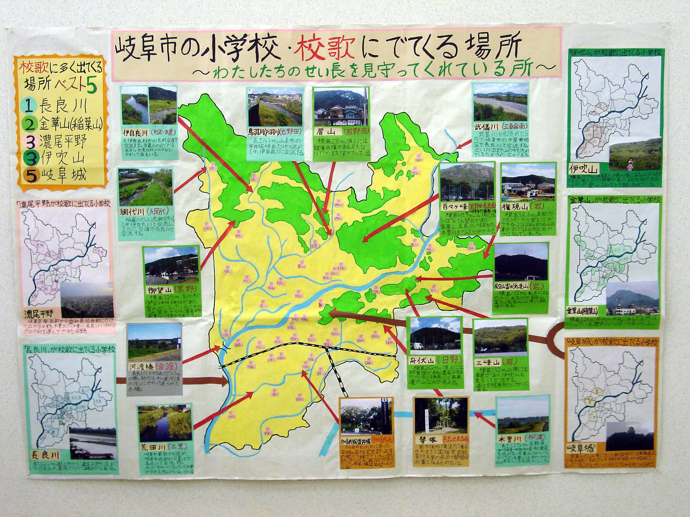 わたしの小学校の校歌には、3つのすてきな場所が出てきます。他の岐阜市の小学校は、どんな場所がでてきてそれはどこにあるのか知りたかったので調べることにしました。